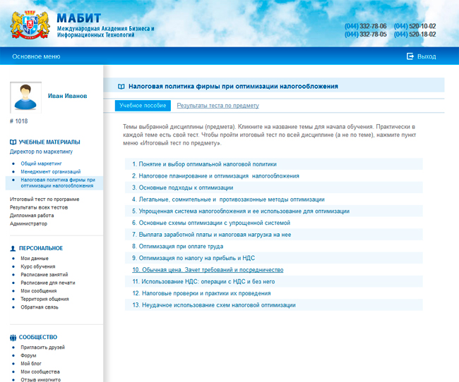 Внешний вид личного кабинета слушателя:Так выглядит кабинет слушателя |